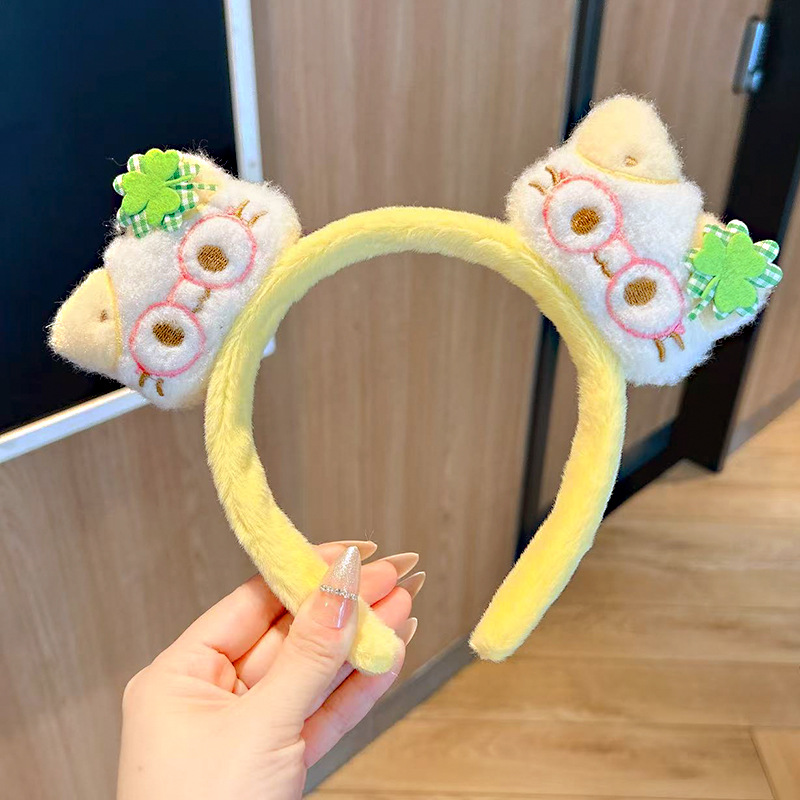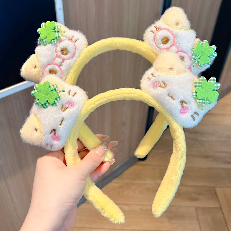 新款奶黃色髮箍卡通可愛貓咪毛絨洗臉壓秋冬款百搭毛茸茸頭箍髮飾