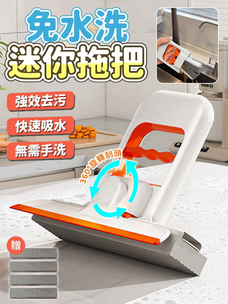 小拖把折疊耐用免手洗迷你桌上懶人棉拖把